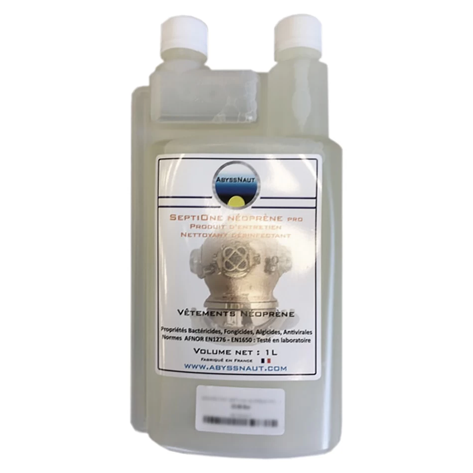 Le produit SeptiOne Néoprène Pro est le produit d’entretien à usage professionnel, spécifiquement formulé pour application sur les vêtements de plongée et le néoprène.