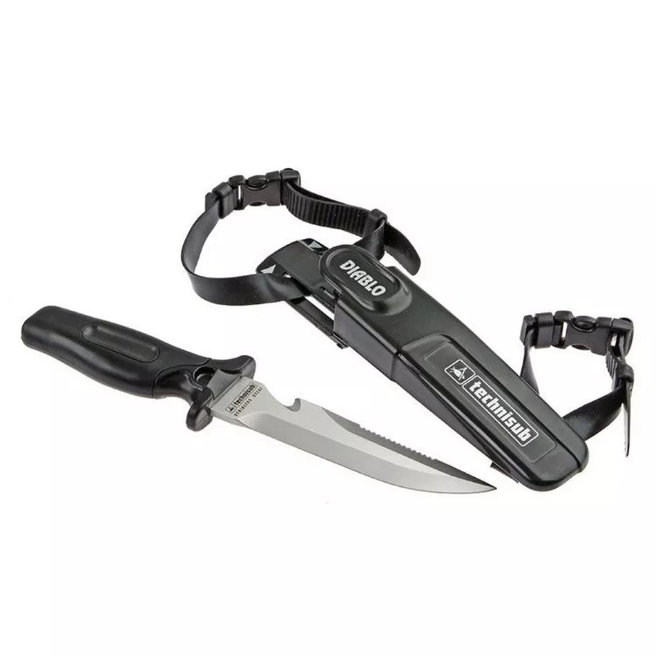 Couteau de plongée sous marine Aqualung Diablo Razor fabriqué en acier inoxydable de qualité marine.
