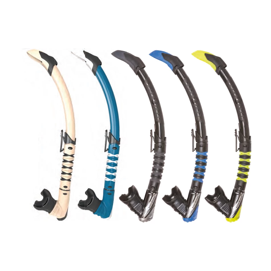 Sa conception unique fait appel à deux matériaux : un matériau rigide permettant d’éviter que le tuba ne se comprime et un matériau souple et flexible permettant de réduire la pression exercée sur la bouche du plongeur.