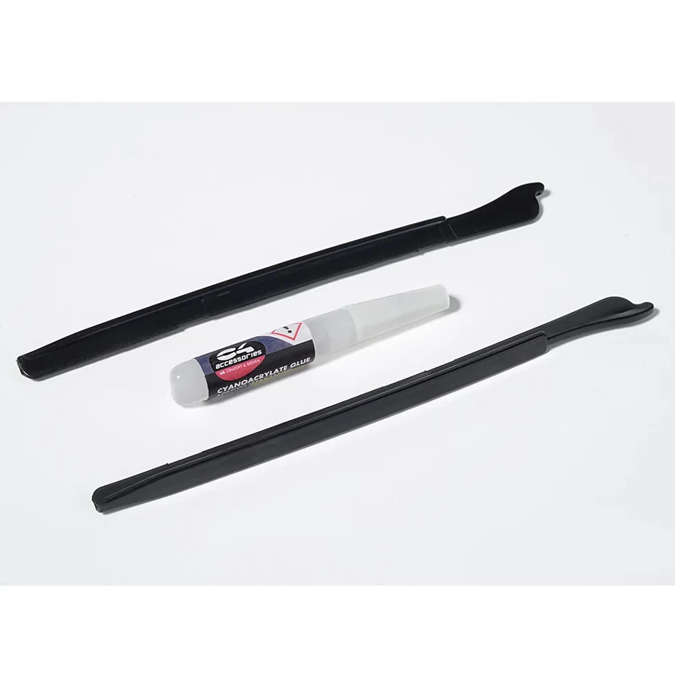 Le kit comprend 2 longerons en thermoplastique et 2g de colle cyanoacrylate adaptée au collage du plastique sur la fibre de carbone.