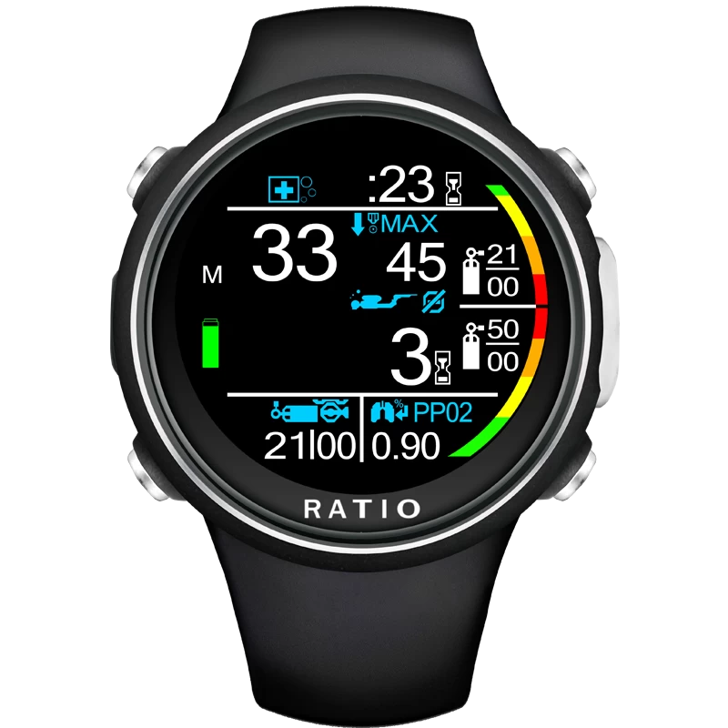 Ordinateur de plongée Idive Deep Color Dive system etudié pour les plongeurs qualifiés, Air, Nitrox et Trimix normoxique, 3 mix, Air intégré, Multi-Transmetteur, 1.3 inc IPS Ecran couleur, boussole…écran coloré de 1,3 pouces à fort contraste utilise la même technologie que l’iX3M, il est très facile à lire même dans des conditions de faible éclairage.
