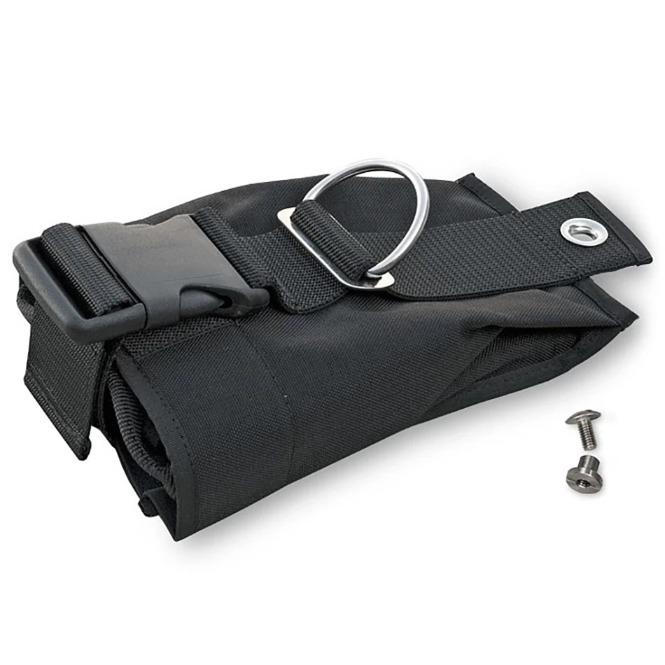 Le système de lestage constitué par 2 poches à plomb, qui sont glissées sur une sangle de ceinture et fixées à une plaque arrière (paire de boulons et d’écrous incluse)du harnis de plongée. La poche gauche est munie d’un anneau en D. À l’intérieur de chaque poche se trouve une pochette intérieure avec une poignée pour insérer les poids.