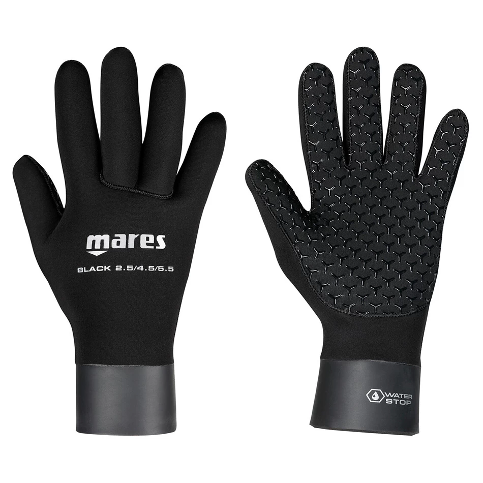 Les nouveaux gants Mares Black 25/45/55 d’apnée sont préformés en néoprène ultra extensible d’épaisseur variable 2.5/4.5/5.5mm pour un confort maximal.