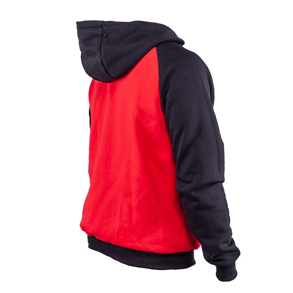 Réalisé dans un tissu tricoté doux au toucher, de poids moyen, en deux couleurs contrastées : rouge et noir, il assure un confort maximal à votre peau.